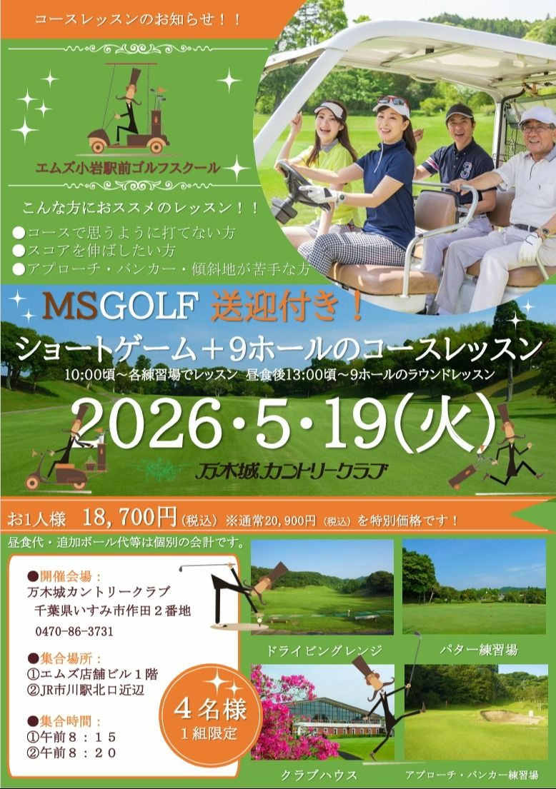 【ショートゲーム+9Hラウンドレッスン 送迎付き!】